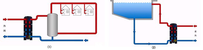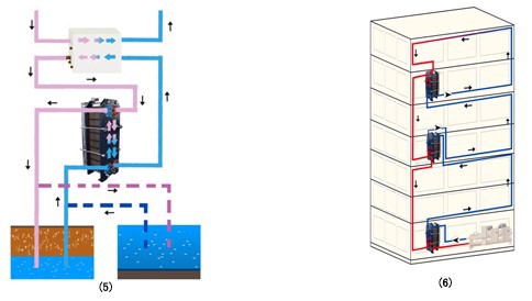 ⑤地源、水源熱泵: 換熱器作為熱泵主機和開放式冷熱源的分離裝置,克服水質對主機等敏感設備的腐蝕。(圖5