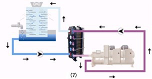 換熱器的使用將開式冷卻循環係統和機組的閉式循環係統分隔開,有效的保護了機組閉式循環係統的潔淨,延長了機組的使用壽命。(圖7